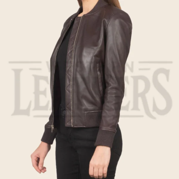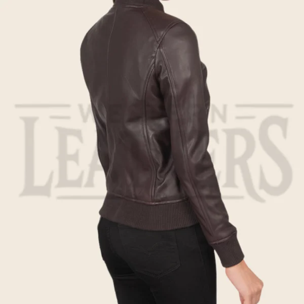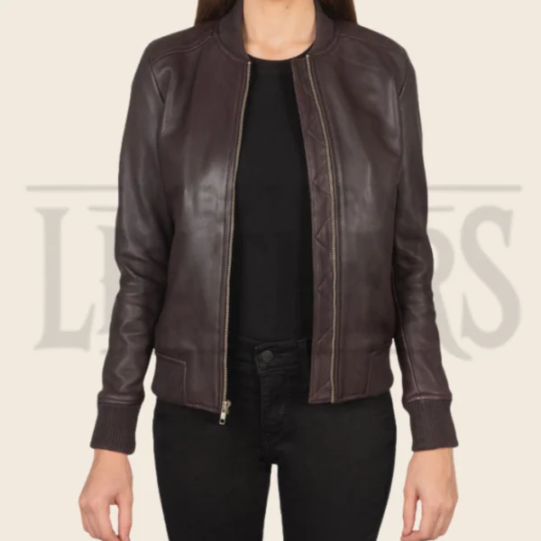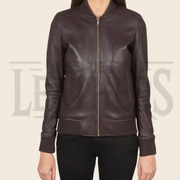 Aria Maroon Leather Bomber Jacket