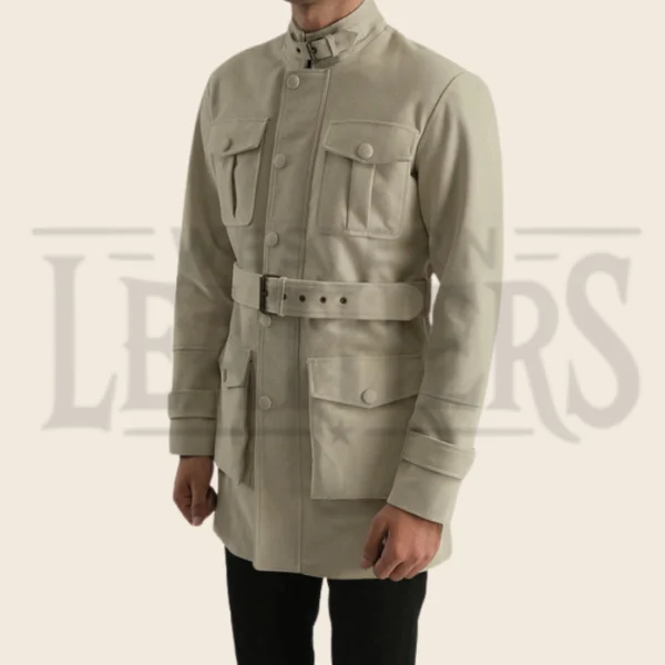 Collar: High neck with belt