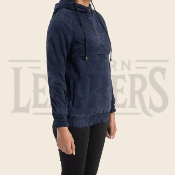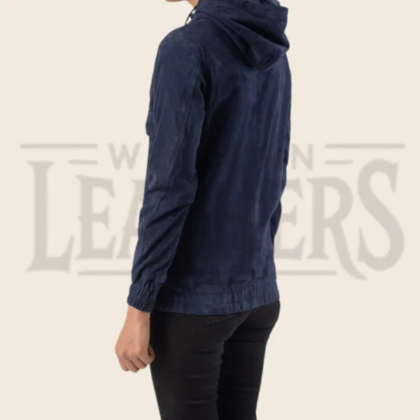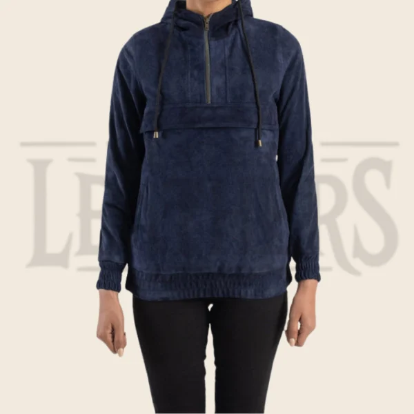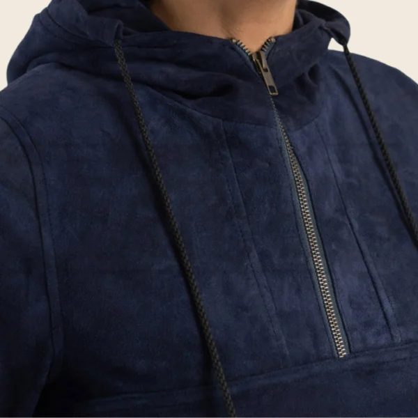 Calista Blue Hooded Suede Pullover Jacket