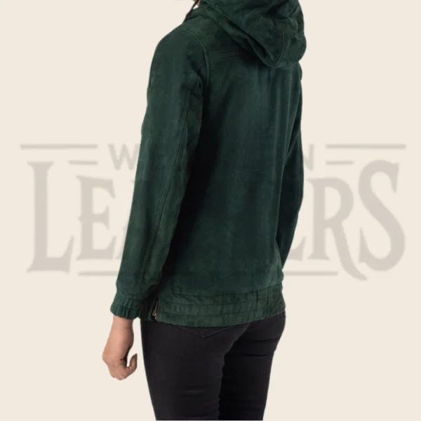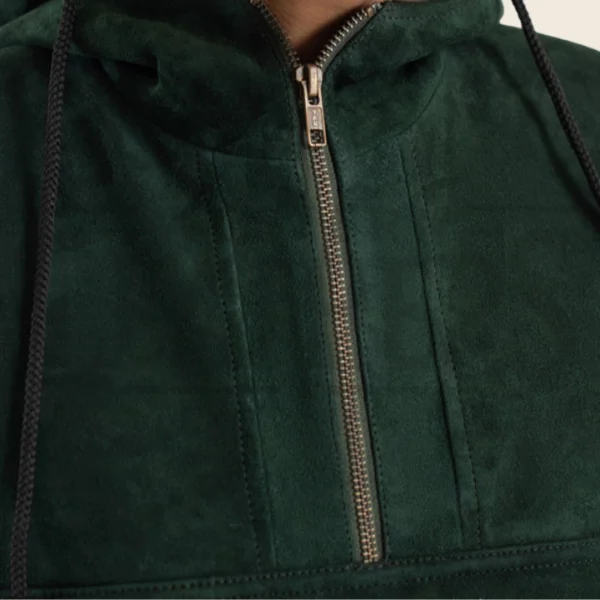 Calista Green Hooded Leather Pullover Jacket