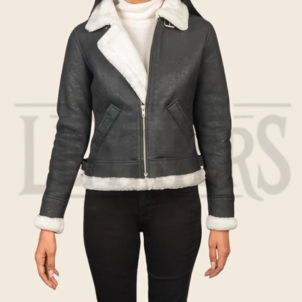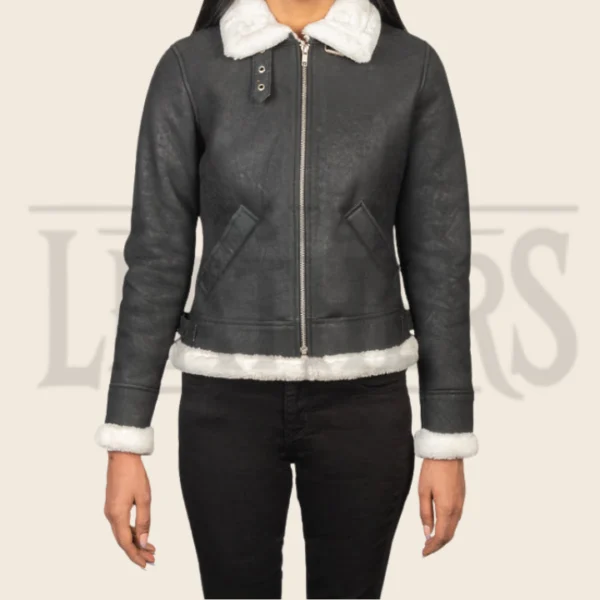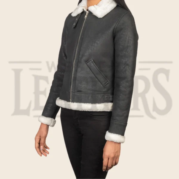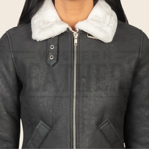 Clarissa B-3 Black & White Leather Bomber Jacket