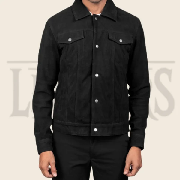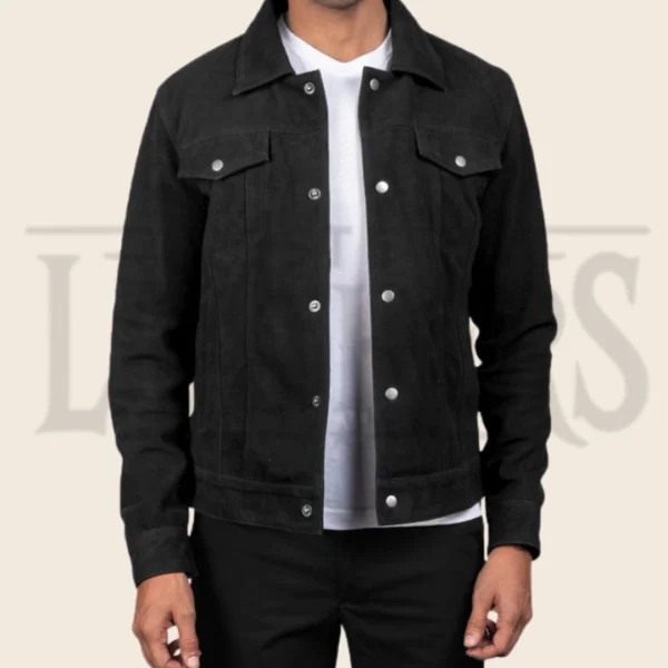 Damien Black Suede Trucker Jacket