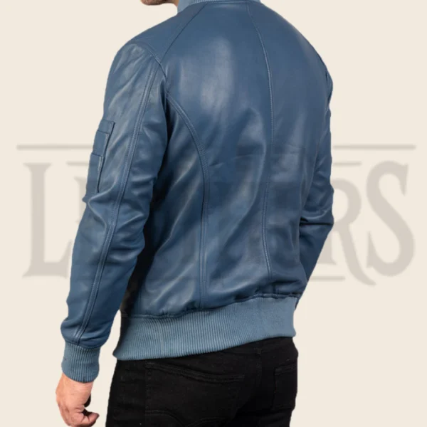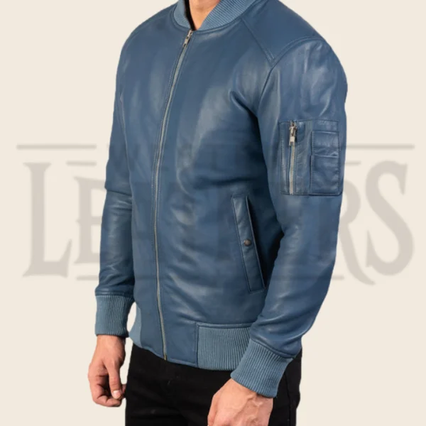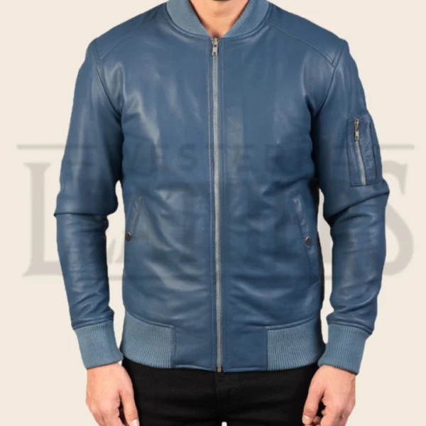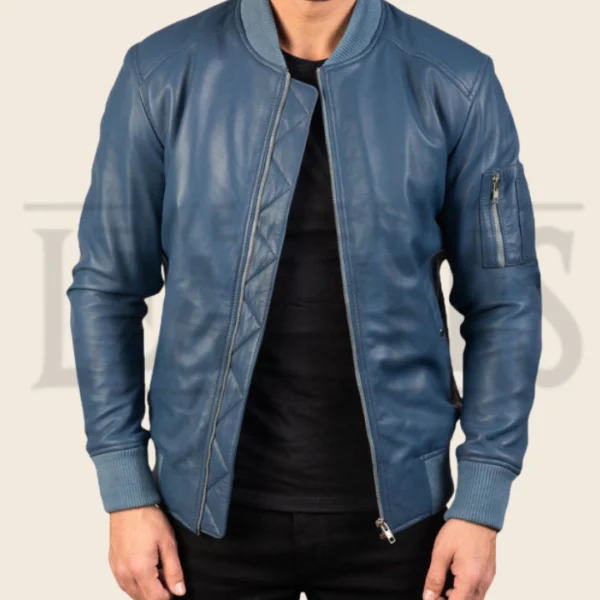 Damien Ma-1 Blue Leather Bomber Jacket