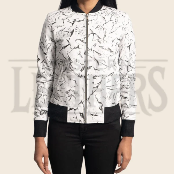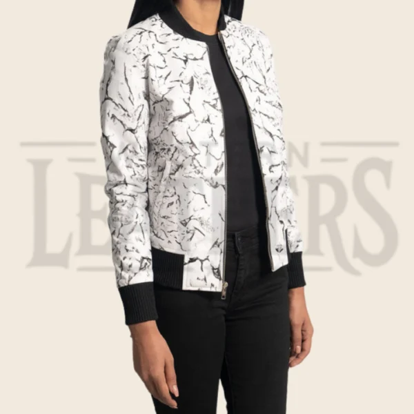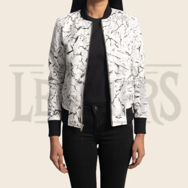 Delphine Blake White Leather Bomber Jacket
