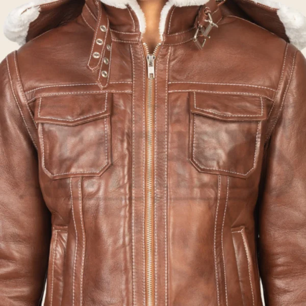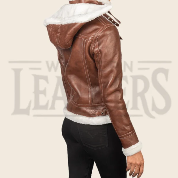 Elara Brown Hooded Shearling Leather Jacket