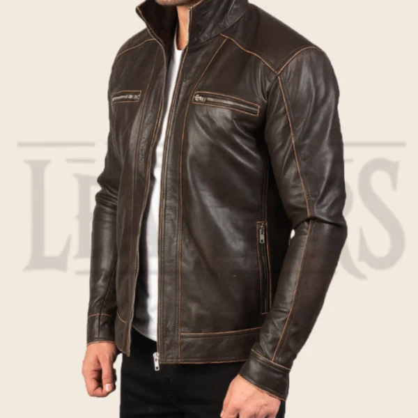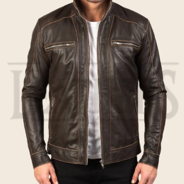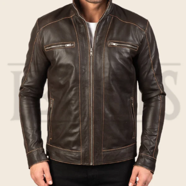 Elijah Brown Leather Biker Jacket