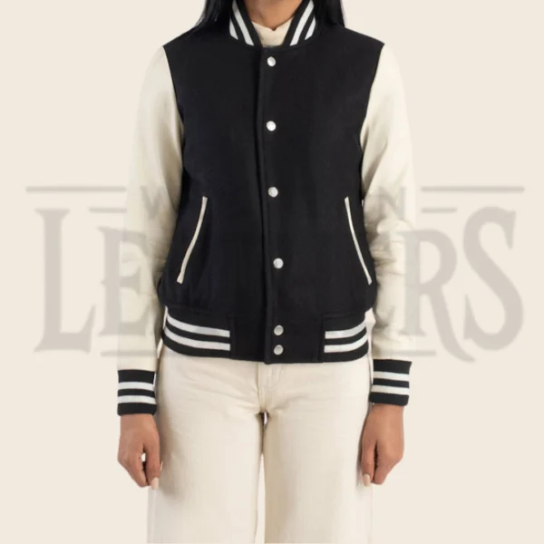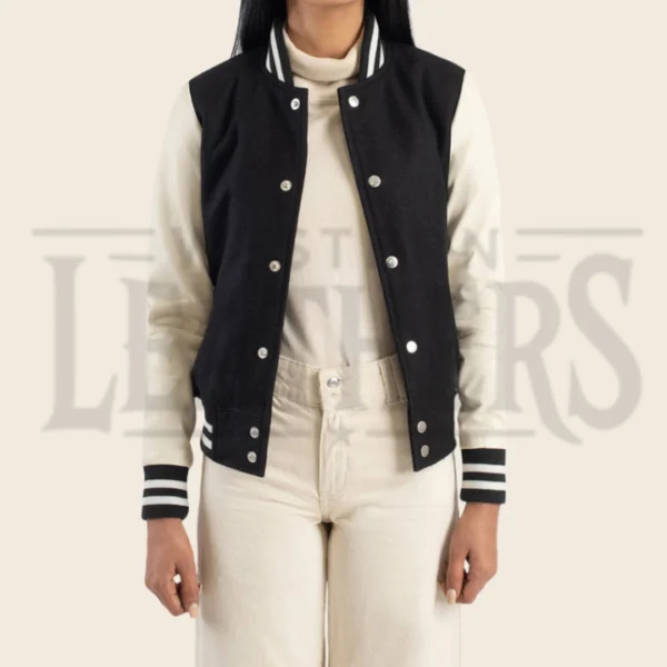Elodie Black & White Hybrid Varsity Jacket