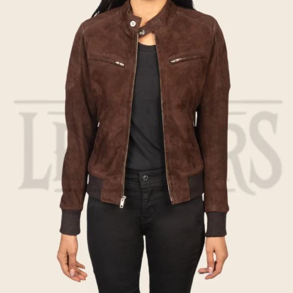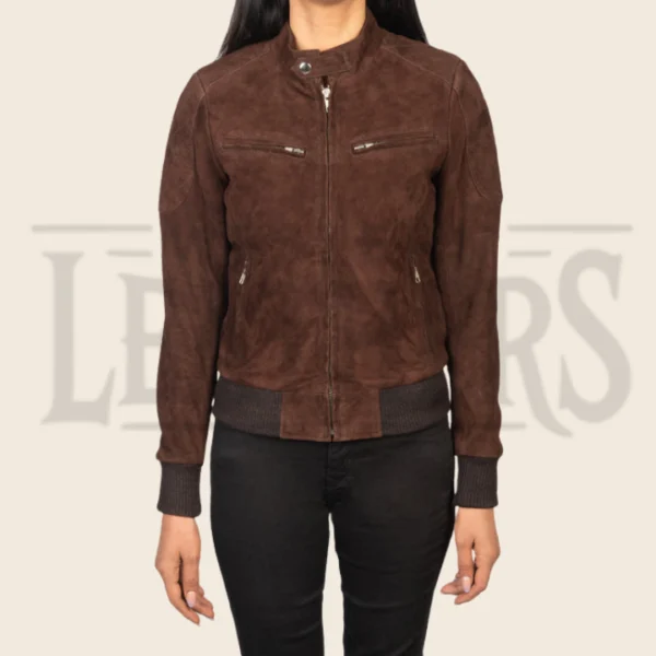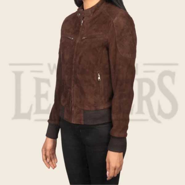 Elowen Mocha Suede Bomber Jacket