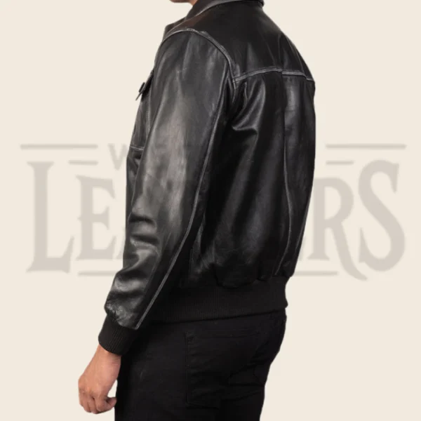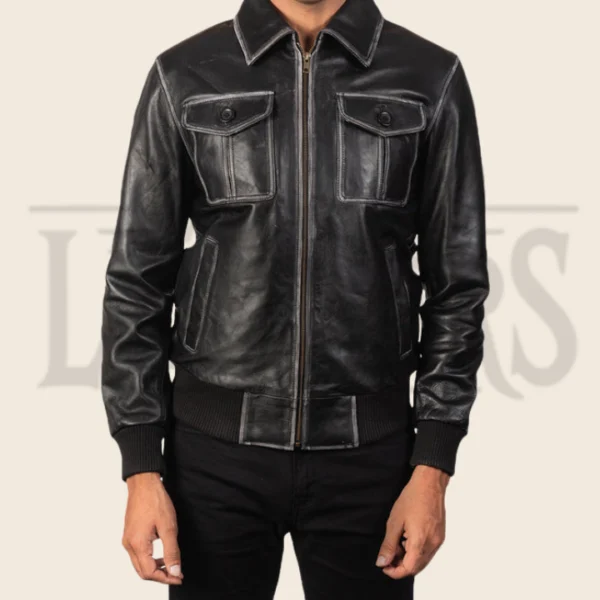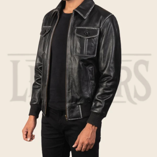 Ethan Black Leather Bomber Jacket