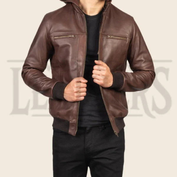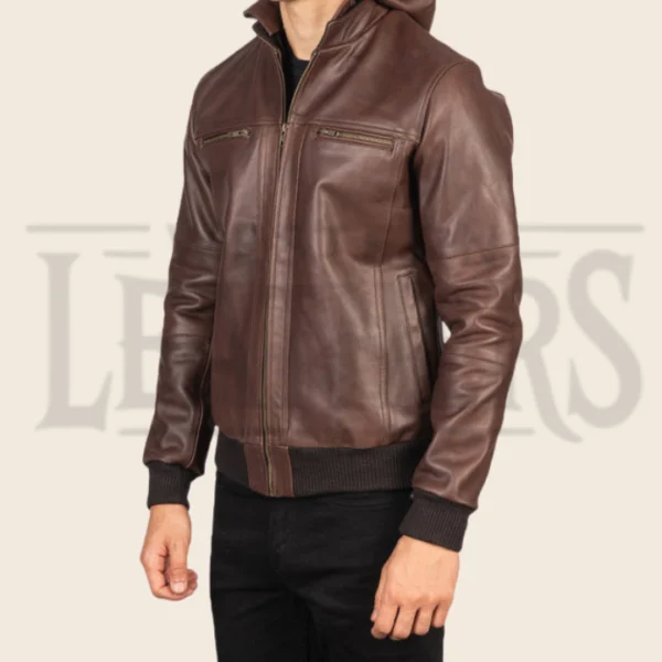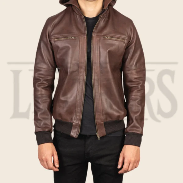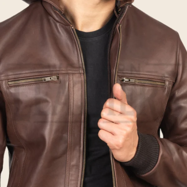 Finn Biz Brown Leather Bomber Jacket