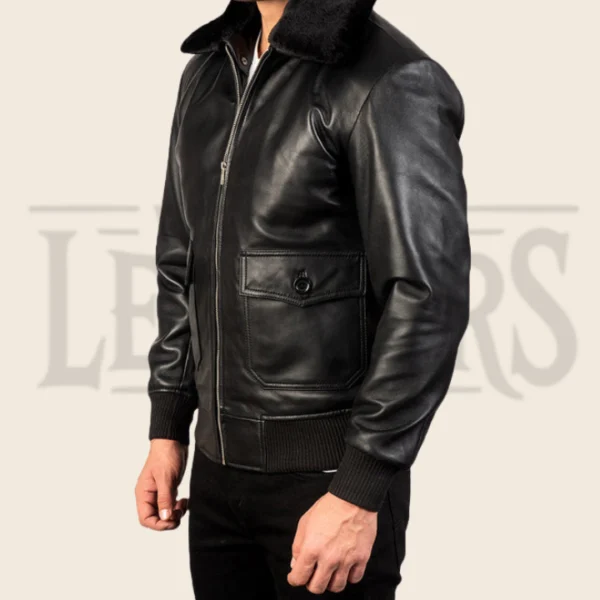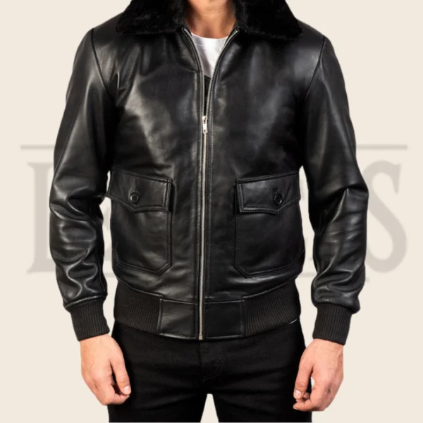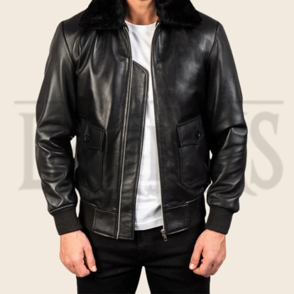 Jasper G-1 Black Leather Bomber Jacket