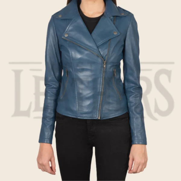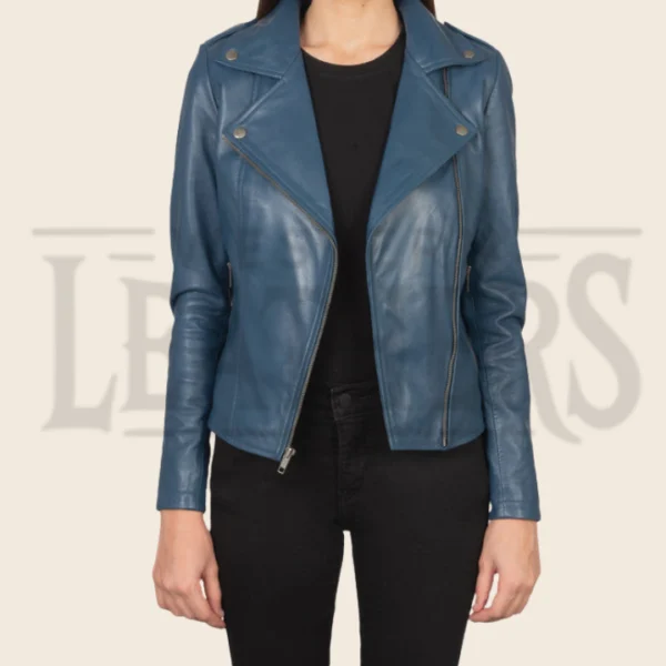 Lyra Blue Leather Biker Jacket
