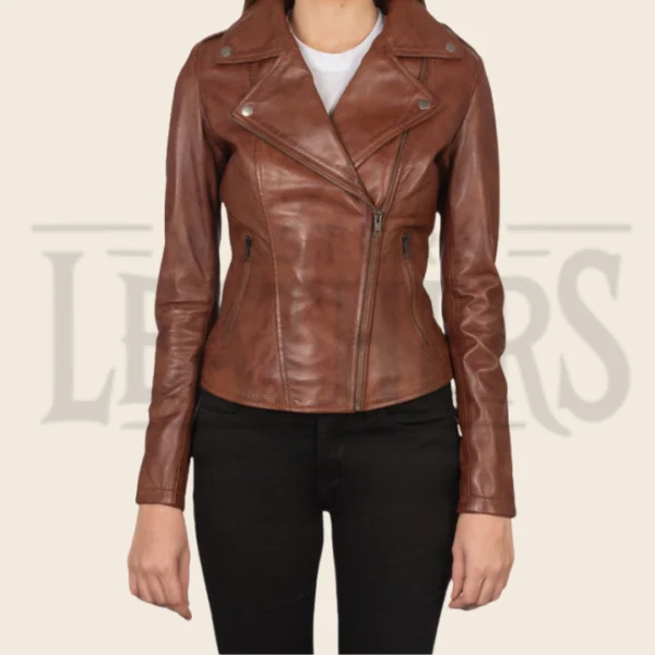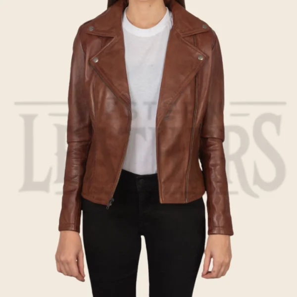 Lyra Brown Leather Biker Jacket