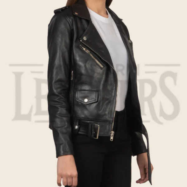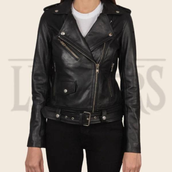 Natalia Black Leather Biker Jacket