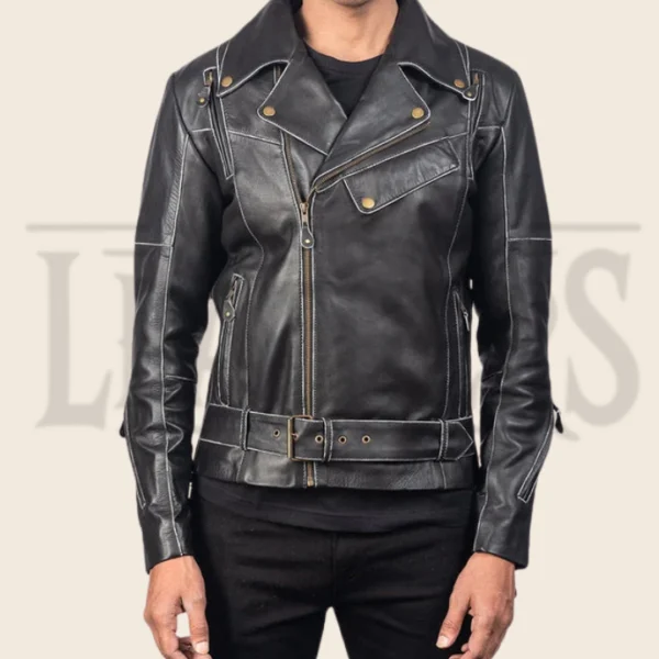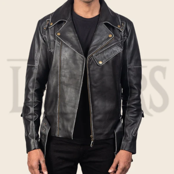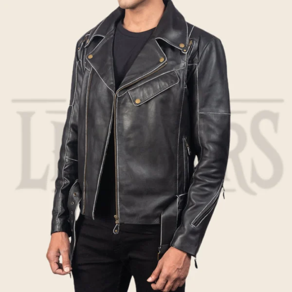 Nathan Black Leather Biker Jacket