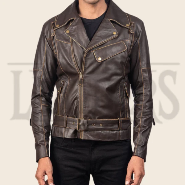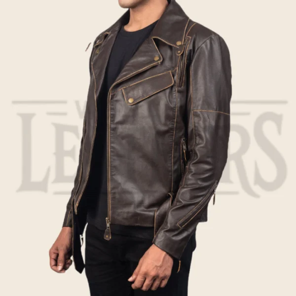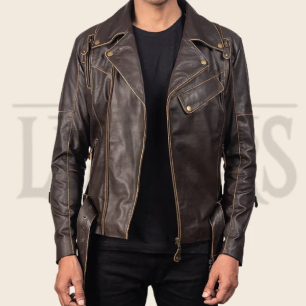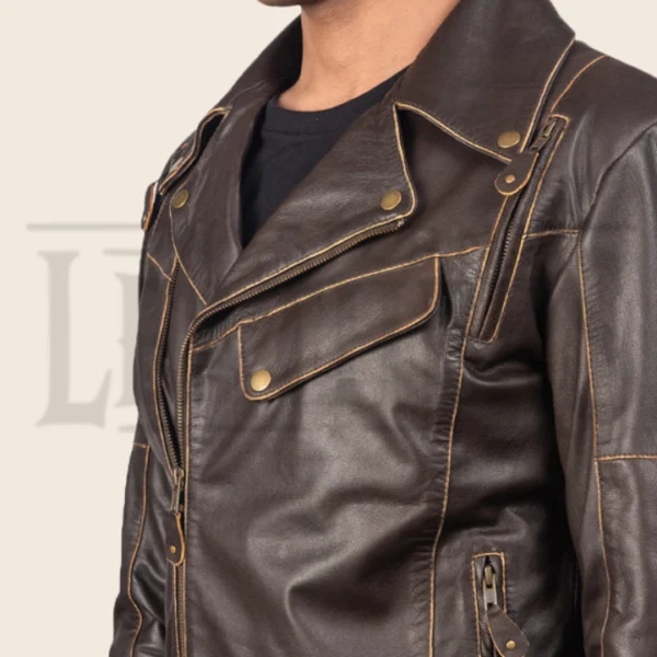 Nathan Brown Leather Biker Jacket