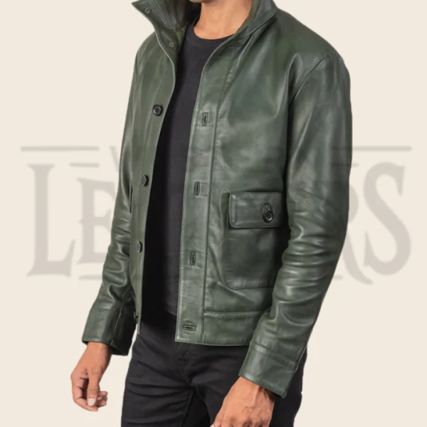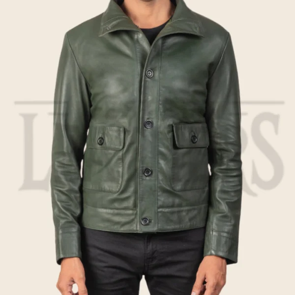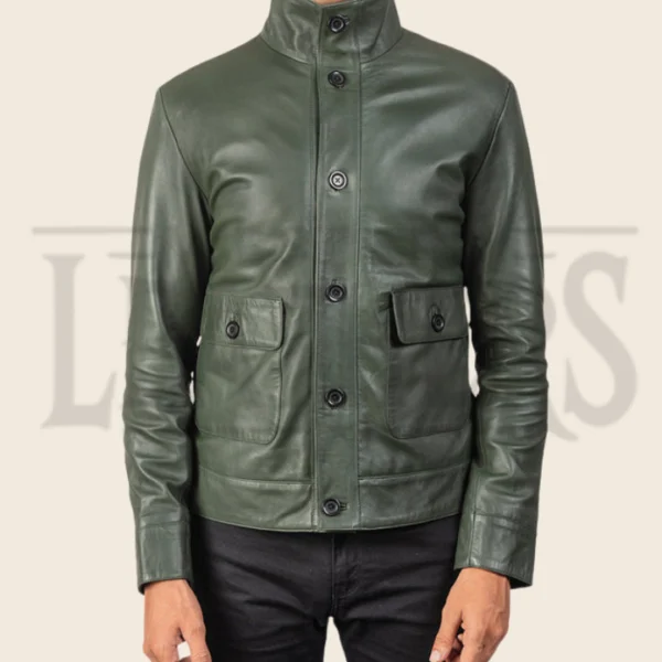 Quentin Green Leather Bomber Jacket