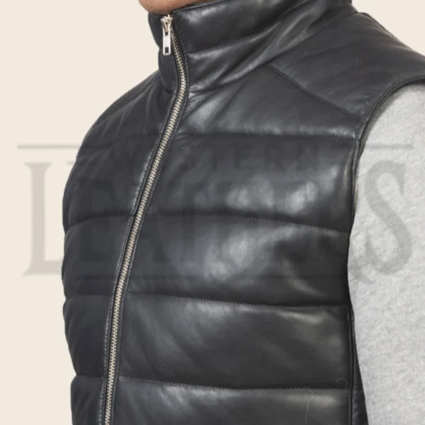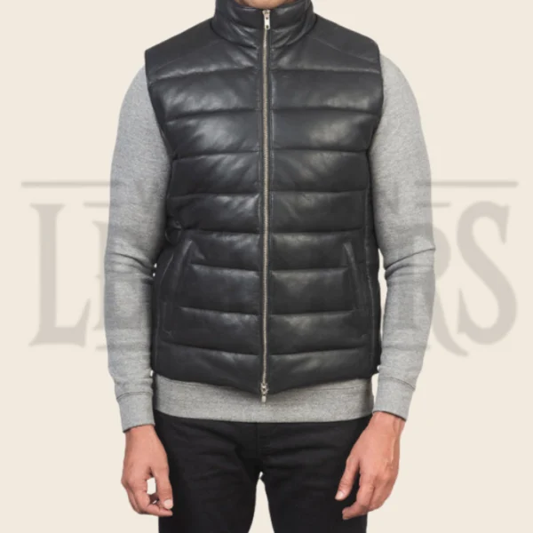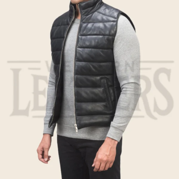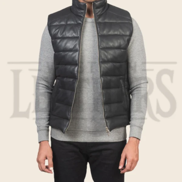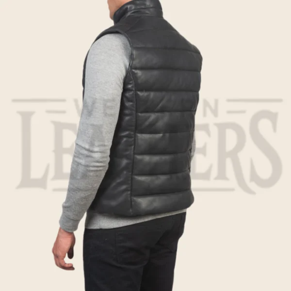 Ryder Black Leather Puffer Vest