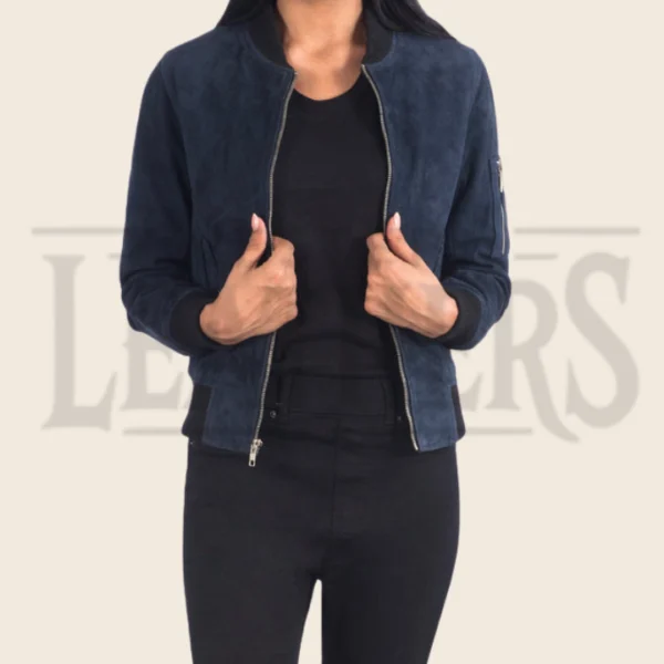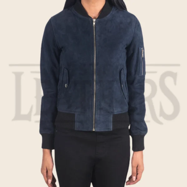 Sienna Blue Suede Bomber Jacket