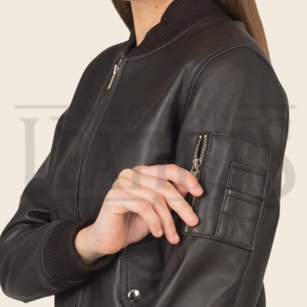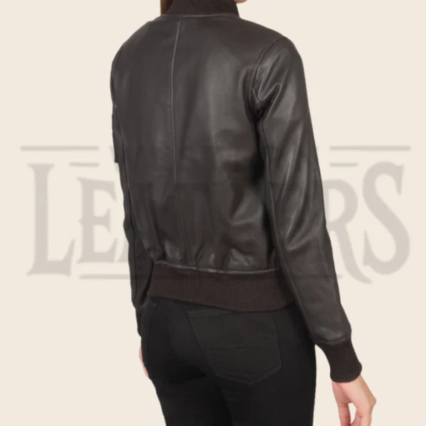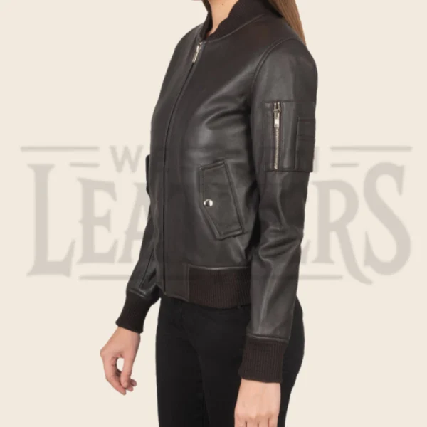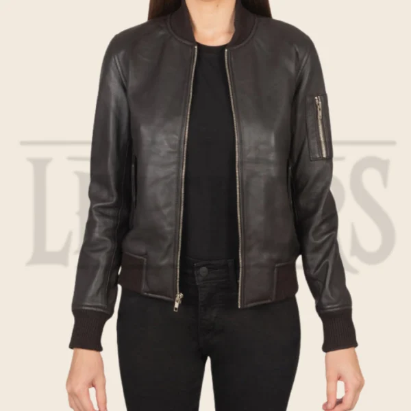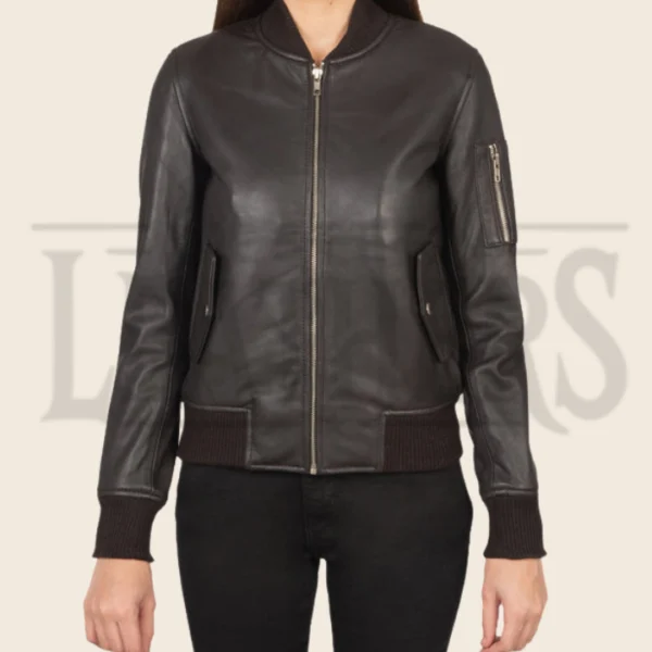 Sienna Brown Leather Bomber Jacket