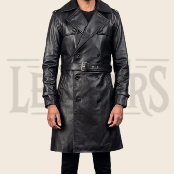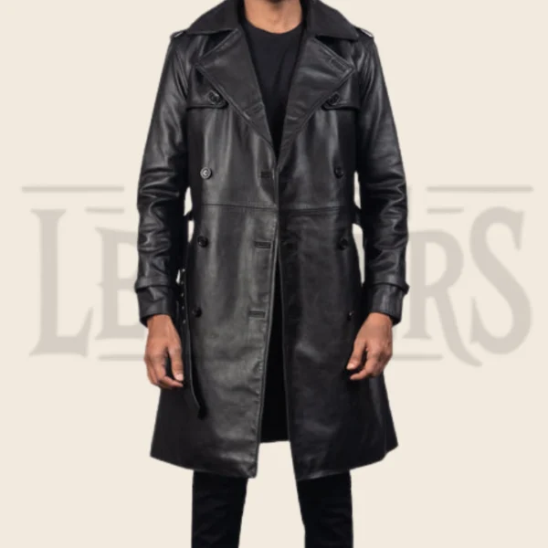 Ulysses Black Leather Duster Coat