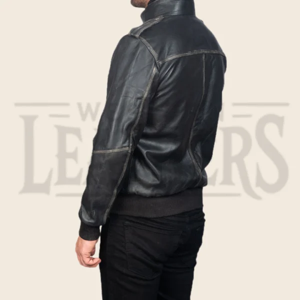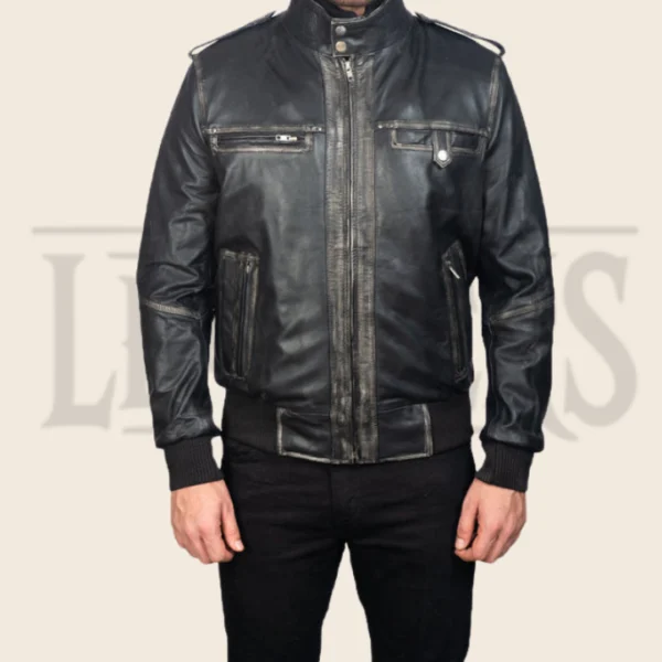 Uriel Street Black Leather Bomber Jacket