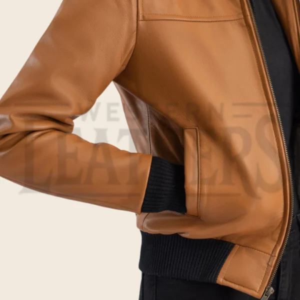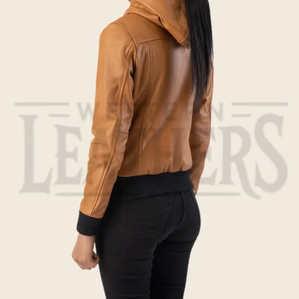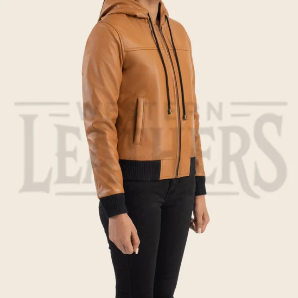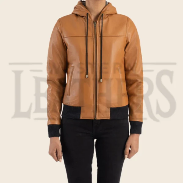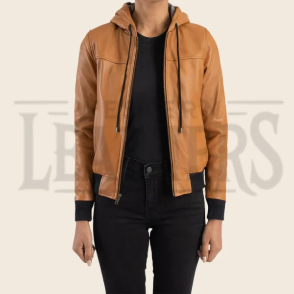 Valeria Brown Hooded Leather Bomber Jacket
