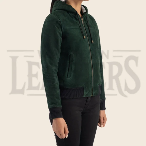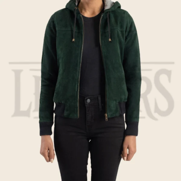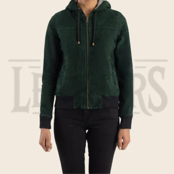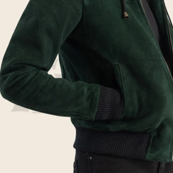 Valeria Green Hooded Suede Bomber Jacket