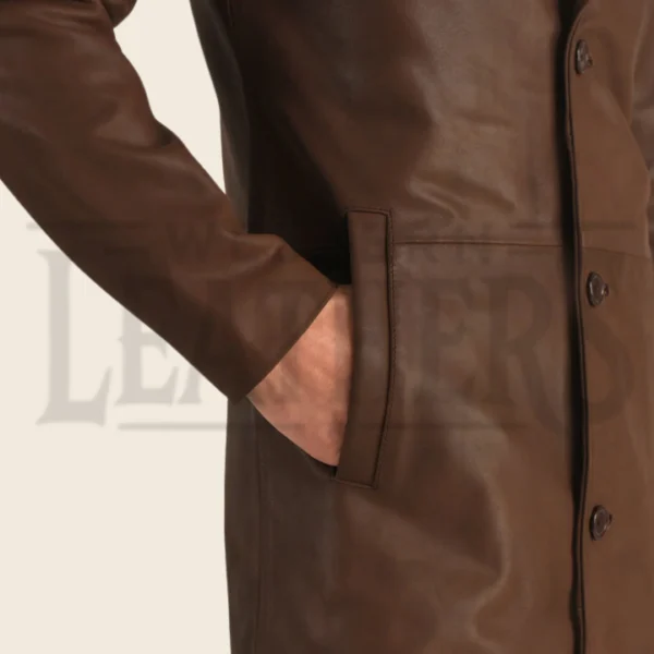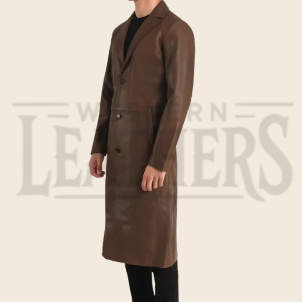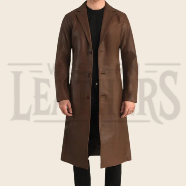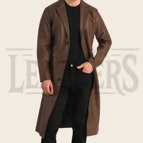 Victor Brown Leather Single Breasted Coat