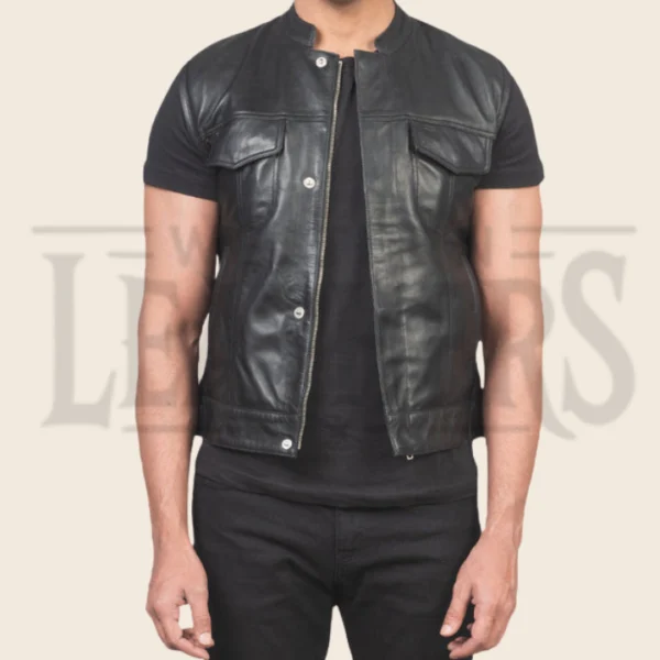 Victor Moto Black Leather Vest