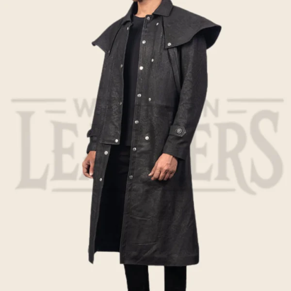 Warren Black Leather Duster