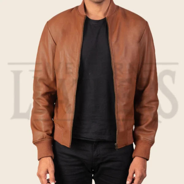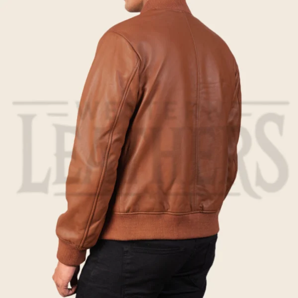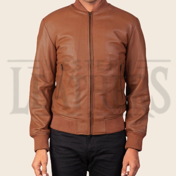 Zachary Brown Leather Bomber Jacket